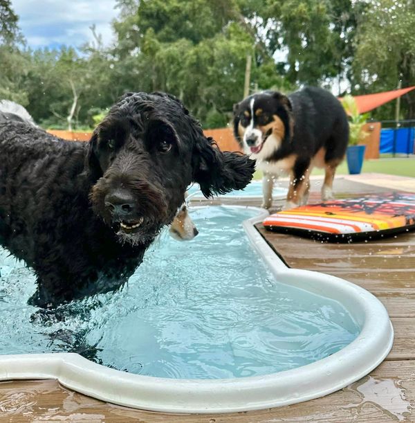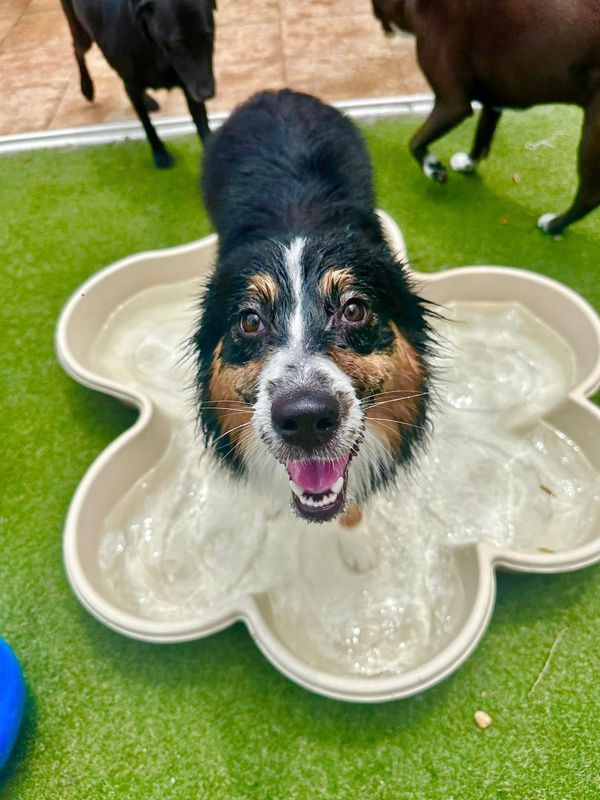 Stay & Play Pet Getaway provides the ultimate boarding experience. We’re your home away from home. Each pet or family has a private, quiet room to relax in for the evening, eating, or just taking a break from the daily activities. Rooms are spacious, air conditioned, tiled, clean and safe. They vary in size to accommodate. We also provide clean bedding and bowls (including slow-feed). Please bring only your pet's food and any medications if needed for the stay.