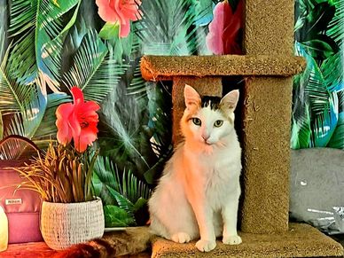 We love cats! Our feline guests enjoy the plush cat room, which is decorated with an aquarium theme. Each cat or family has a private area of their own where they can nestle down in soft blankets, have access to their own food/water bowls and litter box. Every day they get a chance to explore.