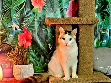 We love cats! Our feline guests enjoy the plush cat room, which is decorated with an aquarium theme. Each cat or family has a private area of their own where they can nestle down in soft blankets, have access to their own food/water bowls and litter box. Every day they get a chance to explore.